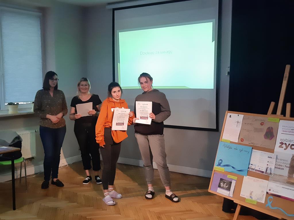 Serdecznie dziękujemy lekarzowi - Pani Adriannie Pionka – Dzbuk, która poświęciła swój czas, spotkała się z nami i poprowadziła zajęcia na tak ważny temat. Dzięki prelekcji, materiałom edukacyjnym, jakie otrzymałyśmy wiemy teraz więcej na temat profilaktyki raka szyjki macicy. Na pewno będziemy pamiętać o wszystkich wskazówkach - w końcu zdrowie jest najważniejsze. Realizację programu edukacyjno-profilaktycznego „Wybierz życie pierwszy krok” koordynują p. Milena i p. Monika.